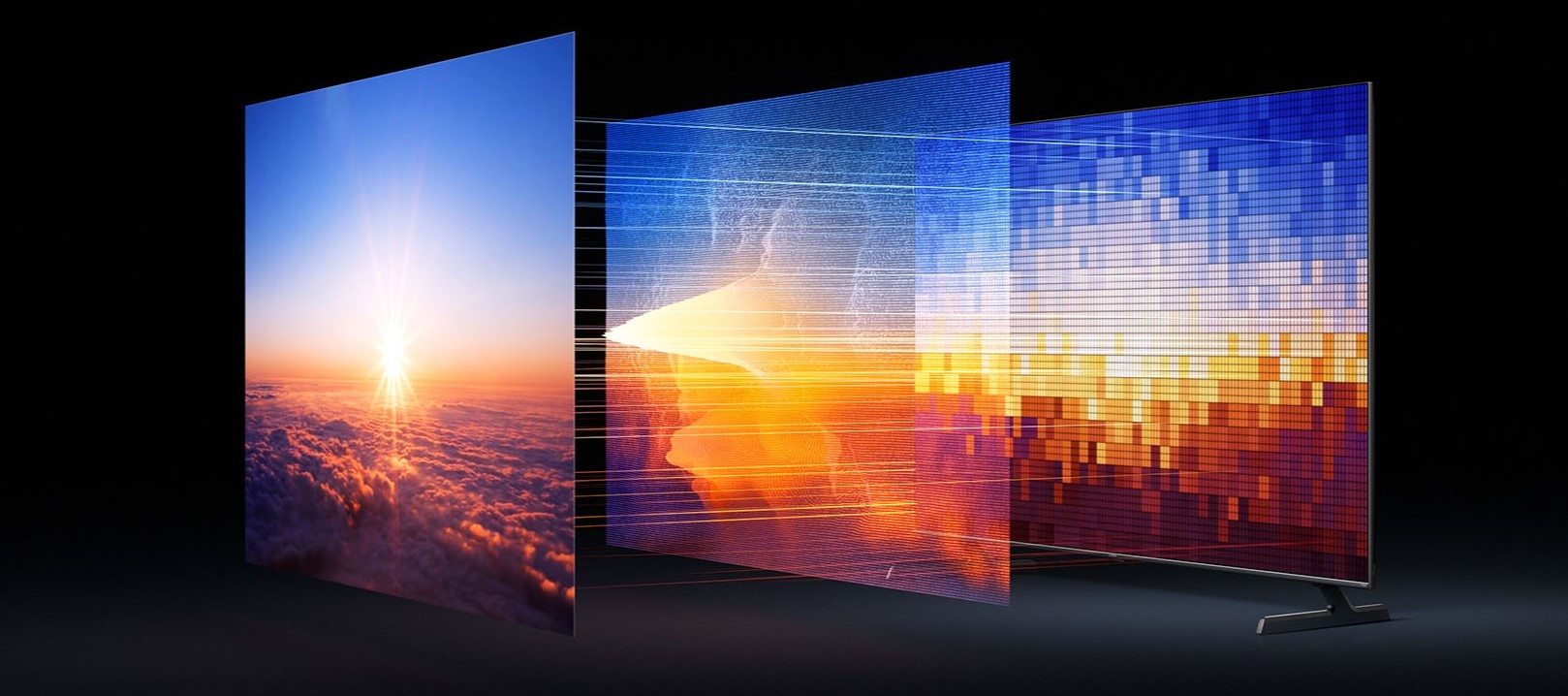 Модель оснащена панелью QLED с системой локального затемнения примерно 308 зон, что позволяет точно управлять подсветкой и повышает контраст изображения. Максимальная яркость достигает около 1200 нит, благодаря чему телевизор уверенно отображает HDR-контент и сохраняет высокую детализацию в светлых и тёмных сценах. Разрешение экрана 4K, углы обзора составляют 178°, а высокая частота обновления обеспечивает плавную и чёткую картинку при просмотре динамичных сцен.