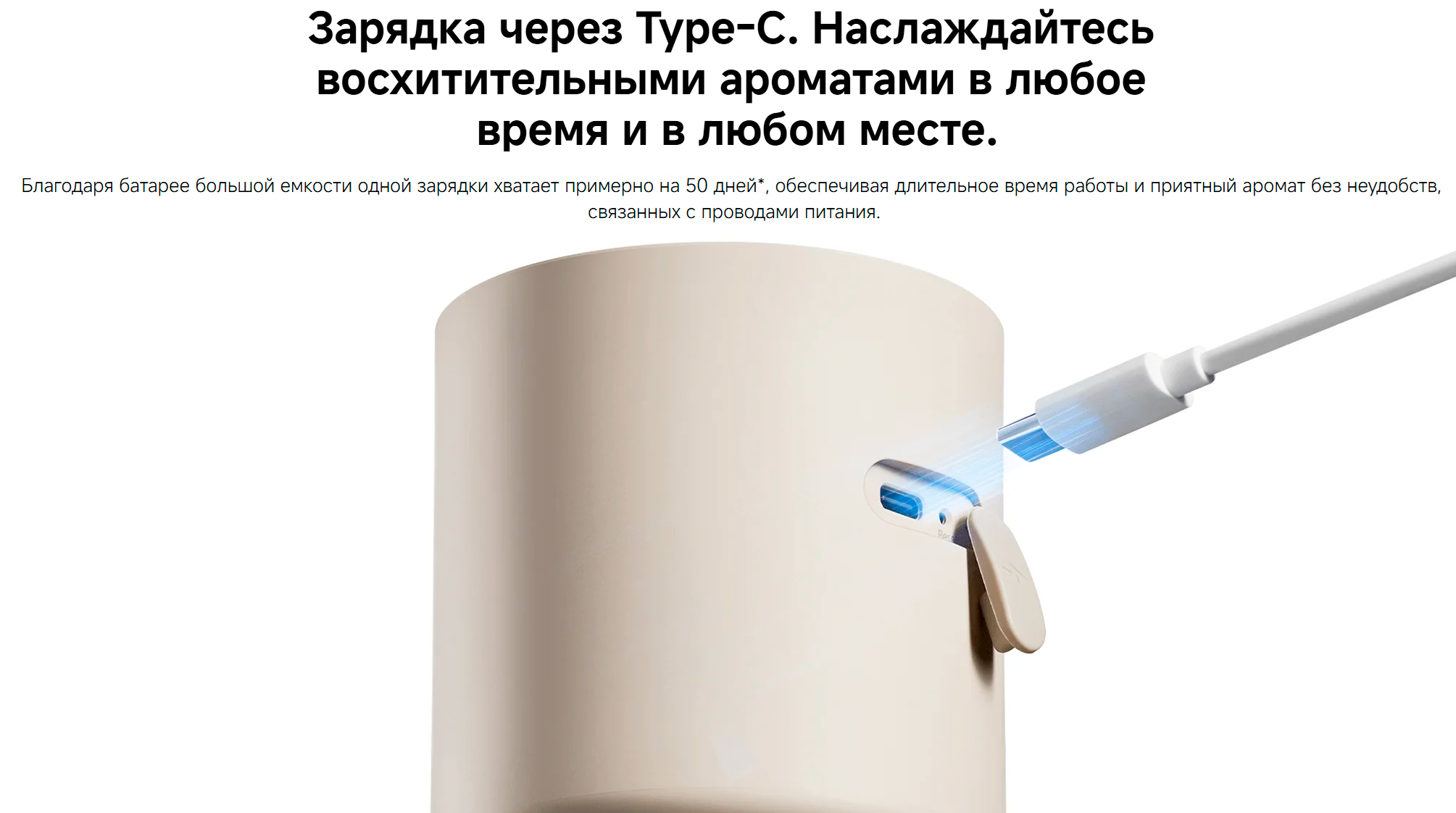 Комплектациязарядный кабель, документация, аромадиффузор
